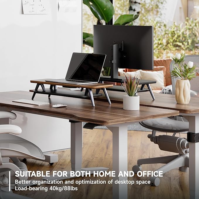- 【2 Tier Desktop Organizer】At longest 23.6inch wide, It has a universal device holder slot and a high capacity compartments. You can easily store your office accessories & supplies under your monitor stand to keep your desktop tidy. Our monitor stand rise comes with cable management slots that can make your cord stay organized.