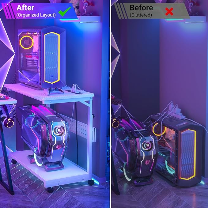 - Exclusive Computer Tower Placement - You no longer have to place your computer tower on the floors or the carpet. This computer power stand makes it more mobile and keeps it elevated from the hardwood floors and the dust/fur that tries to accumulate in and around components left on the floor. And you don't need to worry about the deeper carpet that would choke out the underside airflow of the computer tower.