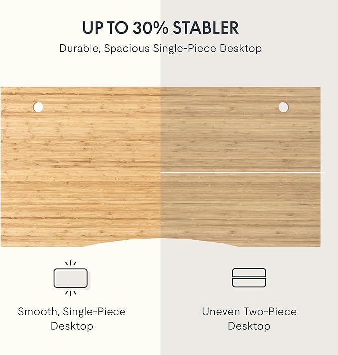 - UNIQUE BAMBOO SURFACE: The one and only! Our bamboo desktop is crafted by layering thousands of real bamboo strips together, preserving the beautiful, unique natural grain of each piece. This makes every standing desk truly one of a kind.