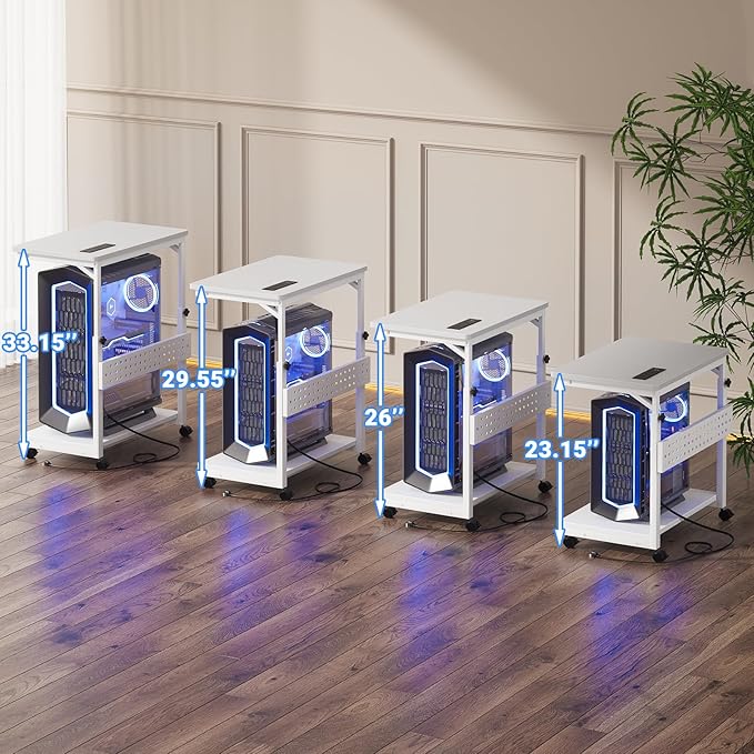 - 4 Levels Manual Adjustable Heights - Features 4 heights to suit your desk heights - from 23" to 26", from 26" to 29.5", and from 29.5" to 33". You can fix the height by turning the knob easily, which allows you to place this PC tower stand under your desk for space saving or be a side stand for your desk to add extra desktop space.