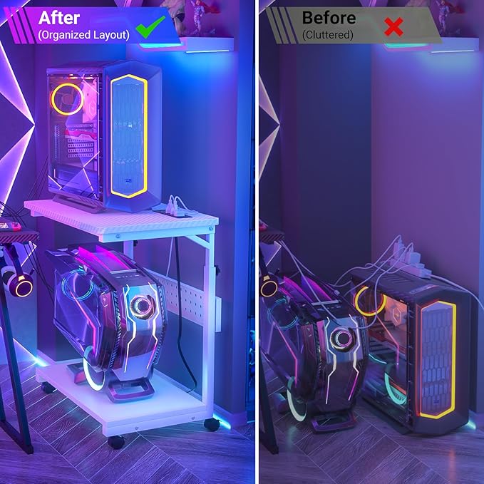 - Exclusive Computer Tower Placement - You no longer have to place your computer tower on the floors or the carpet. This computer power stand makes it more mobile and keeps it elevated from the hardwood floors and the dust/fur that tries to accumulate in and around components left on the floor. And you don't need to worry about the deeper carpet that would choke out the underside airflow of the computer tower.