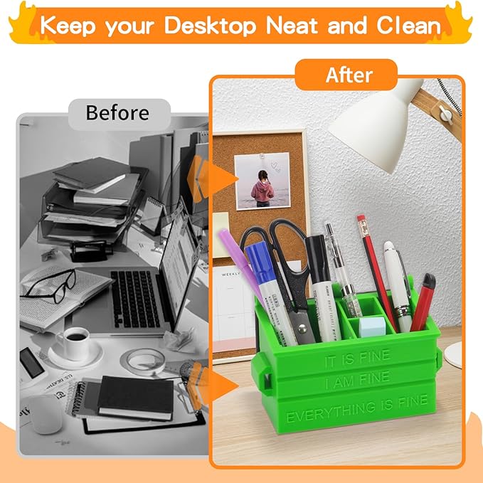 - Durable Novelty Pen Organizer: Crafted from long-lasting, high-quality materials, this fire dumpster pencil holder promises long-lasting use. The sturdy green dumpster provides a stable foundation, ensuring your pens and pencils stay upright and organized. Compact and functional, this desk dumpster is a must-have for anyone looking to liven up their office space while staying organized
