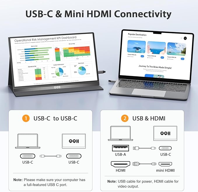 - [Plug-Play 2nd Monitor for Laptop] QQH Z12-3 travel monitor for laptop are plug-and-play and require no software to operate, offering instant connection and simplifying the user experience. This portable computer monitor is designed to revolutionize on-the-go productivity and visual enjoyment