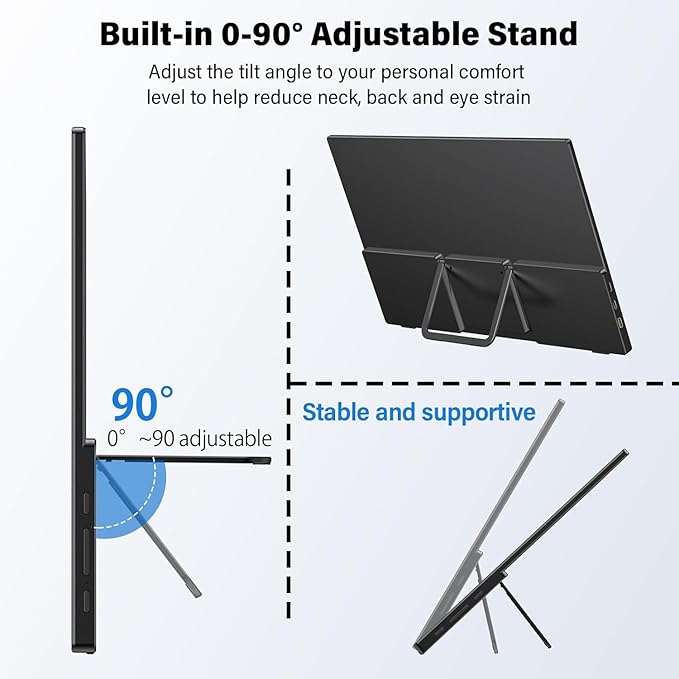 - [Get a Monitor Protective Sleeve]: The case is tailor-made for your portable laptop monitor, lightweight and durable, easy to carry, a perfect companion for your travel or daily commute, and can be easily put into your backpack. Adopts scratch-resistant and durable material, effectively reducing screen wear and tear and enhancing protection. Built-in 90Β° adjustable stand, multiple suitable viewing angles can be selected. Monitor arm can be used for more space-saving installation