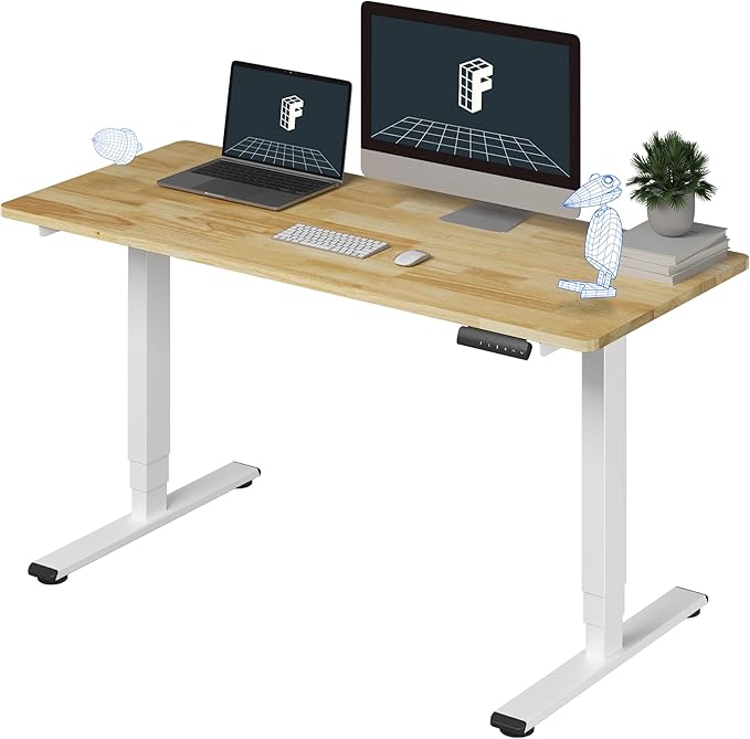 FlexiSpot E6 Solid Wood 3-Stage Dual Motor 55 x 24 Electric Standing Desk, Holds 220 lbs, Adjustable Height w/ Memory Presets, Butcher Block Rubberwood Desktop & White Frame, Ships in 2 Boxes