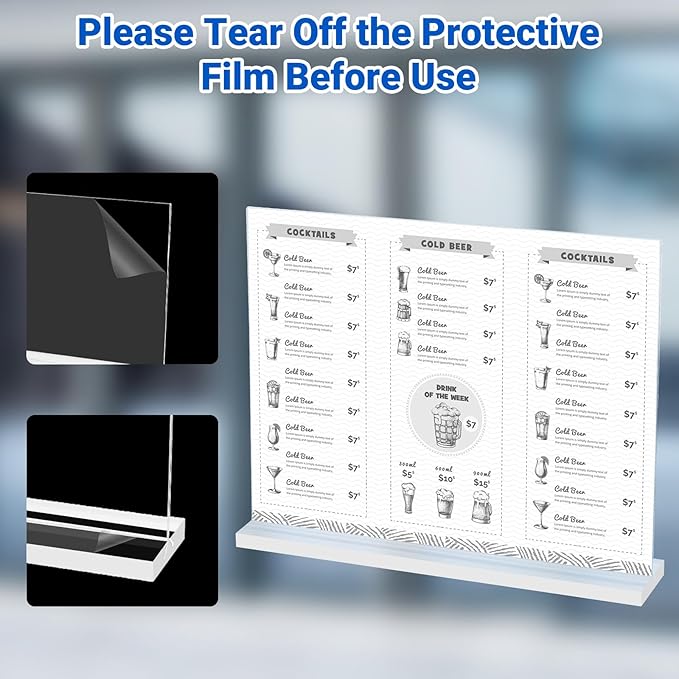 - Protective Film for Scratch-Free Surface: Each sign holder comes with a protective film on both sides to safeguard against scratches during transportation and handling. Before use, remember to remove the protective film on both sides for a scratch-free surface.