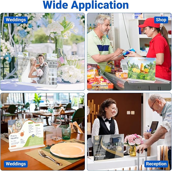 - Sturdy Base (0.4'' Thick), More Stable: T Shape design and sturdy base for stable self-standing display, without worrying about easy to tip over, ideal for showcasing images, announcements, or advertising pamphlets.