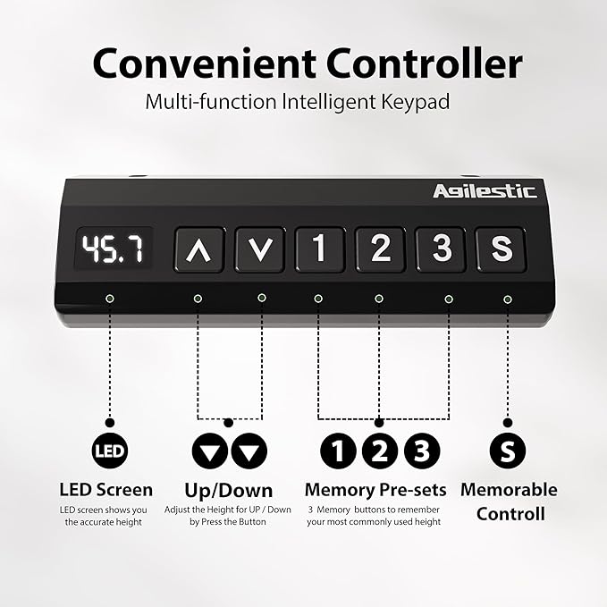 - 【【Electric Height Adjustment】Adjusts from 27.8"–45.9" with quiet motor (<55 dB) and two memory presets for effortless sit-stand transitions.