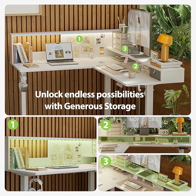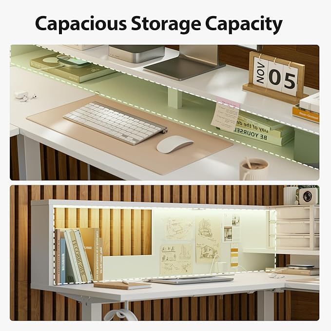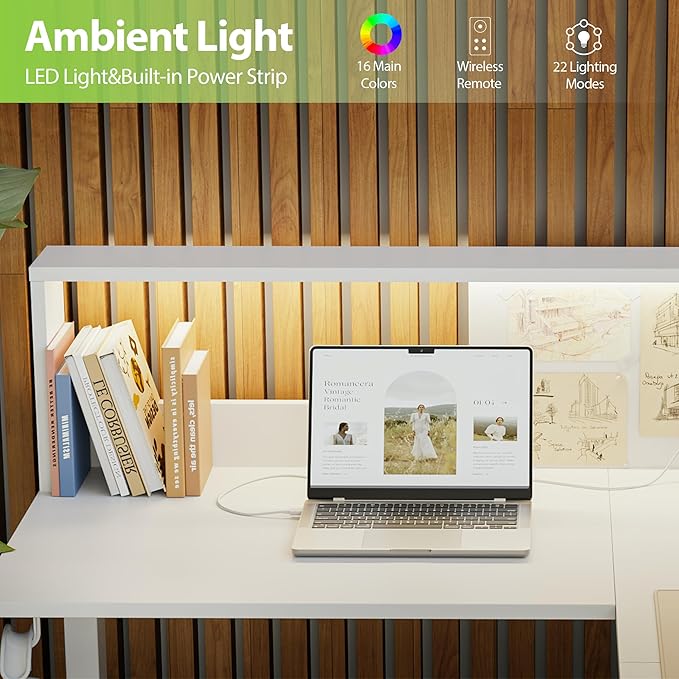 - 【Ambient Light & Power Strip】Built-in soft LED light enhances desk atmosphere. Integrated power strip offers convenient device charging.