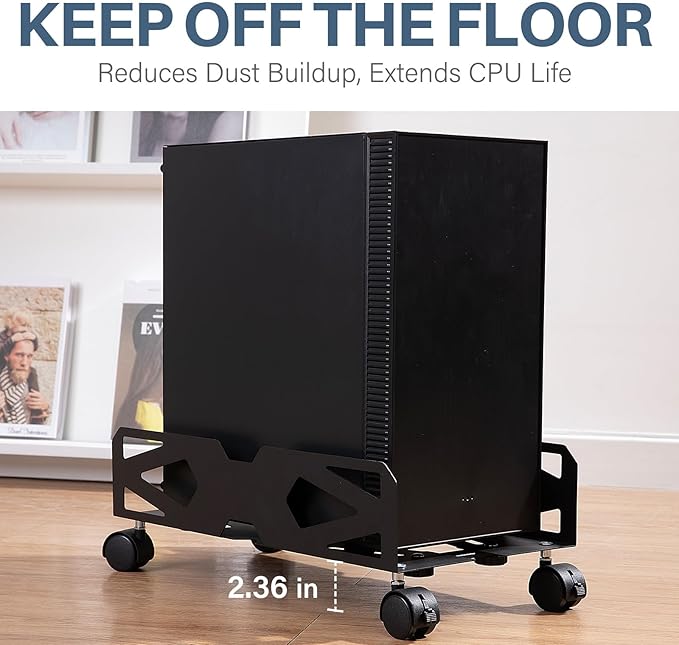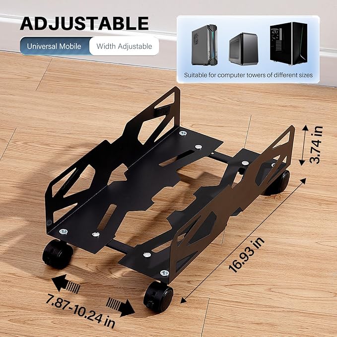 - Adjustable Width: Our cpu holder is adjustable in width, with an adjustable width range of 7.87--10.24 inches and a length of 16.93 inches, it can support most computer towers on the market. If you are looking for a decent wheeled stand for a variety of different sized computers, this is a good choice.