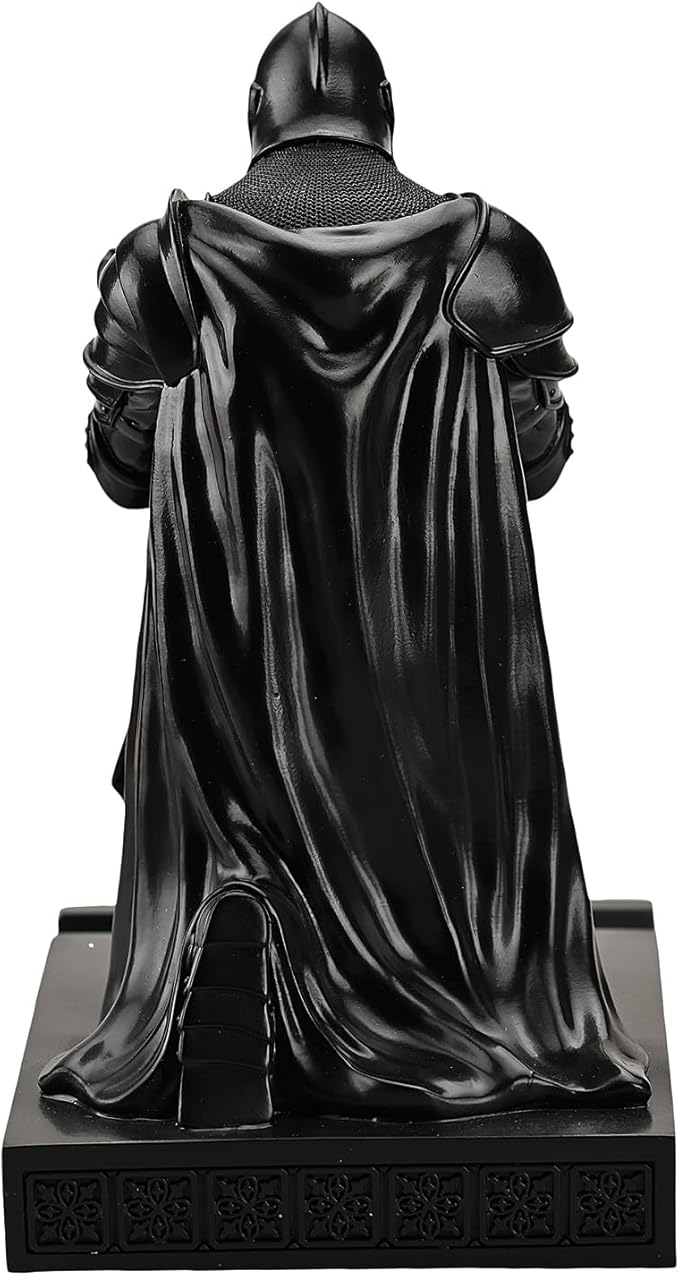 Medieval Armored Warrior Wearing Outerwear, Mobile Phone Stand Knight Pen Holder Desk Organizers, Resin Bookends Paperweight with a Letter Opener for Desk (Black)