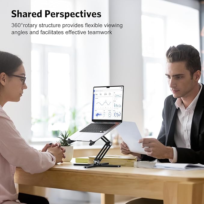 - 【360° Rotatable & Adjustable】: Designed with a 360° rotatable axis, this laptop stand allows you to easily share your screen with someone sitting across the room.You can adjust the angles and heights according to your needs. This perfect design will increase your work efficiency when collaborating with others