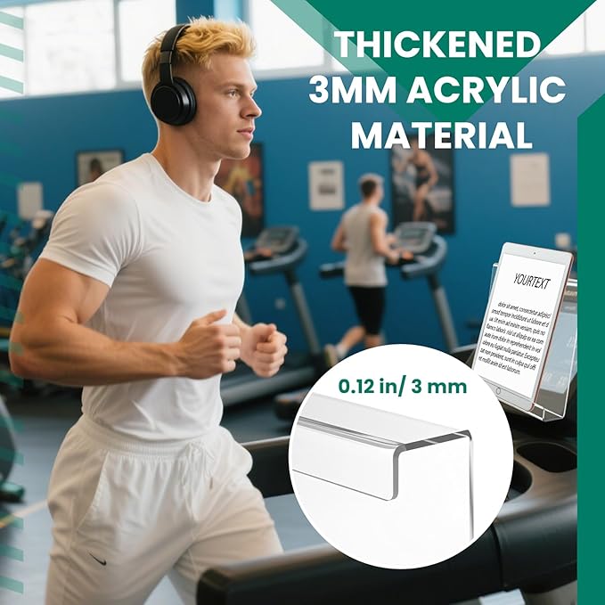 - Lightweight yet solid: the book holder is made of acrylic plastic, which is lightweight but very solid for long-term use; You can engage in other activities while exercising with it installed on your treadmill, such as reading a book or magazine, studying for a test, listening to music, talking on the cell phone and more