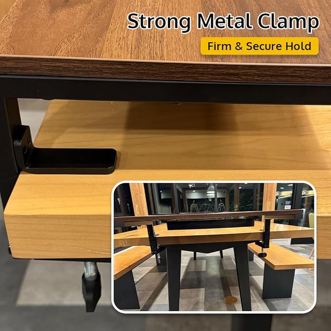 - 𝐕𝐞𝐫𝐬𝐚𝐭𝐢𝐥𝐞 𝐖𝐨𝐫𝐤𝐬𝐩𝐚𝐜𝐞 𝐒𝐨𝐥𝐮𝐭𝐢𝐨𝐧: Our clamp-on monitor riser is designed to keep your desk tidy and your screen at eye level. It functions as a monitor stand riser for desk, desktop monitor platform, and computer monitor stand. It also helps organize your home office desk and serves as a practical desktop organizer, office desk accessory, and home office essential, making your workspace efficient, comfortable, and clutter-free.