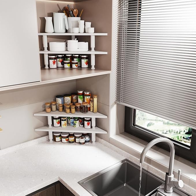 2 Pack White Corner Monitor Stand, Triangle/Square Adjustable Height Riser, 27-inch Universal Desktop Shelf for Computer, Laptop, PC, iMac, Printer (White)