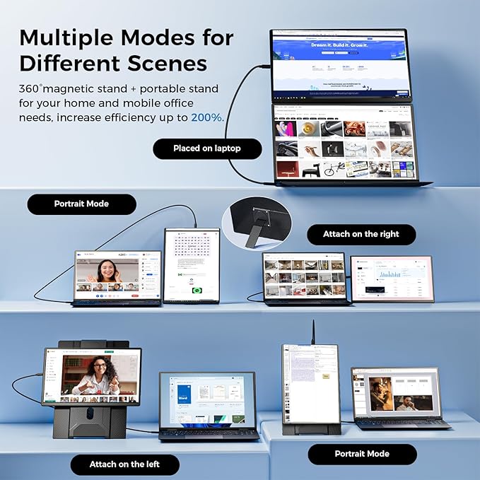 - Laptop Screen Monitor Extender,1080P FHD Portable Monitor for Laptop, Built-in Speaker and Adjustable Backstand, Triple Screen Extender Compatible With Wins/MacOS/Chrome