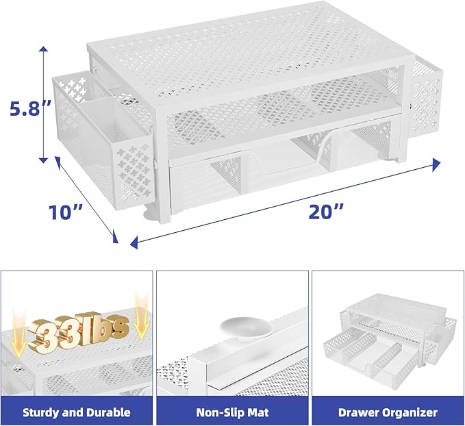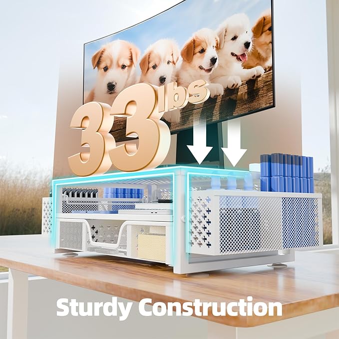 - Increases air flow to prevent overheating: The monitor stand is a mesh platform made of metal that improves air flow to your device, These holes also help prevent the dreaded overheating and keep your computer cool and in optimal working condition
