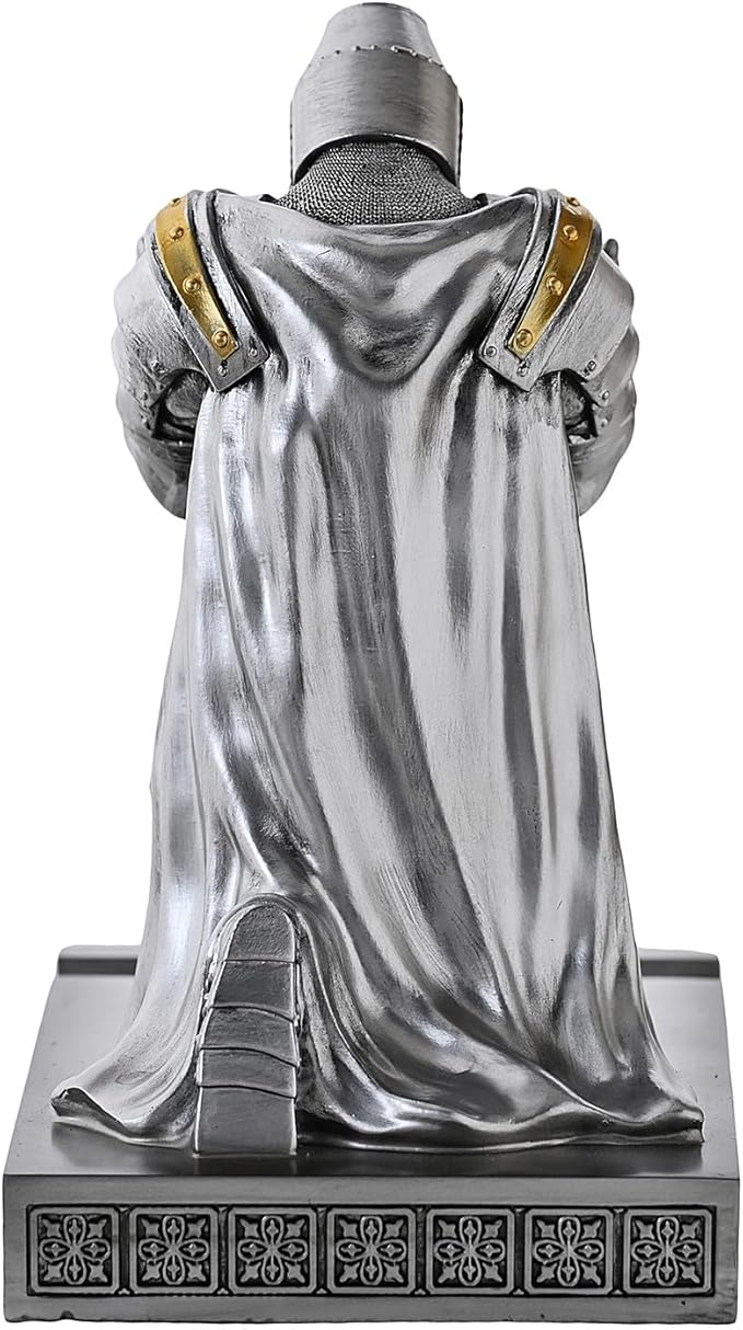 Medieval Templar Vanguard Officer Knight Pen Holder Pen Stand Desk Organizers and Accessories Resin Mobile Phone Stand as Gift for Office and Home Desk Organizer (Silver)