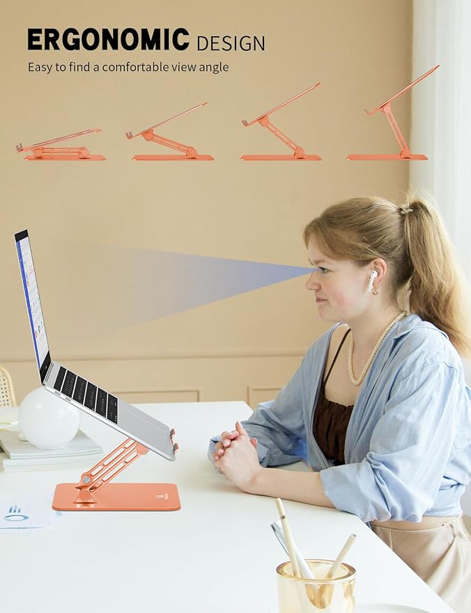 - ERGONOMIC COMFORT: Adjustable from 0° to 90°, this laptop stand for desk promotes proper posture, alleviating neck, back, and wrist strain while reducing eye fatigue for a healthier, more comfortable experience