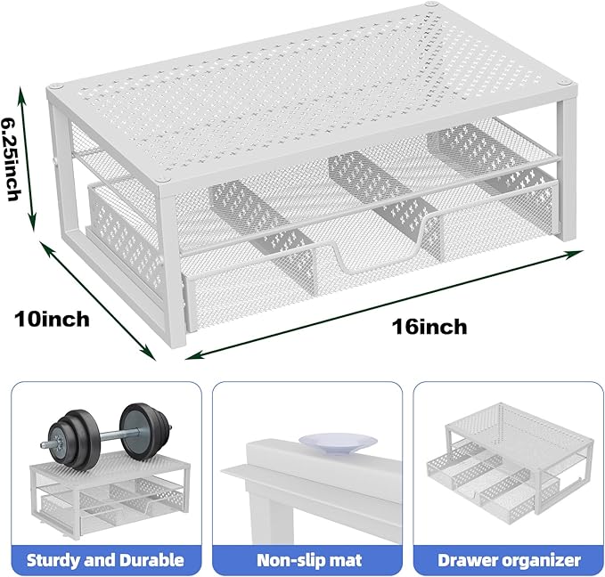 - Multi-function Storage: BUILT-IN drawer are perfect for organizing office supplies and accessories for a more productive and tidy working environment: The bottom flat tray with metal desk accessories drawer organizer, can be ues alone
