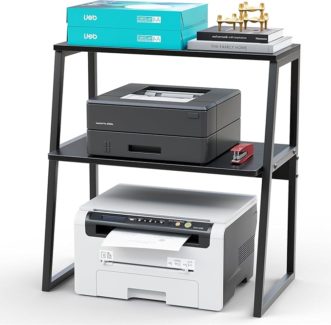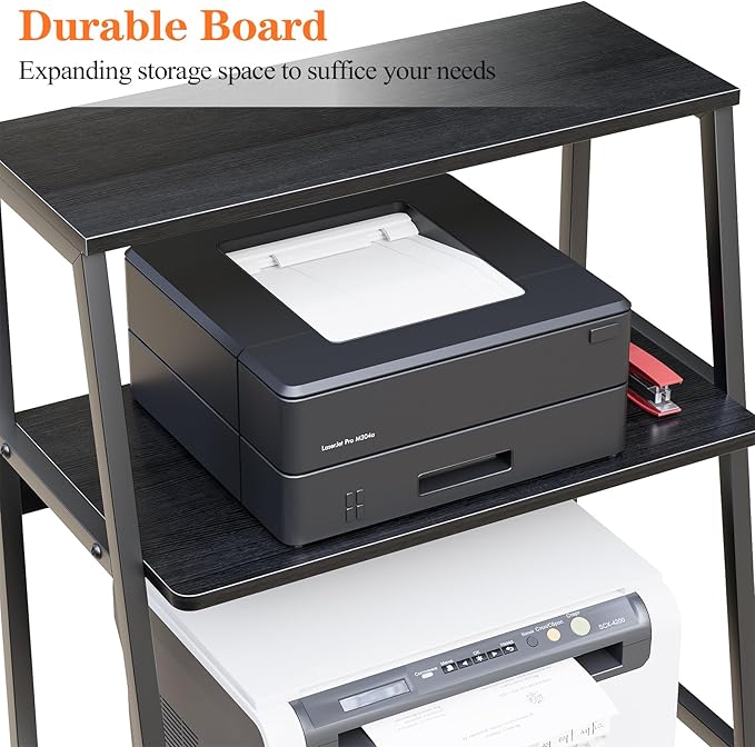 - 【Maximize Work Space】3 Tier printer stand provides more storage space and increases the area of the work area. The printer stand for desk is large enough to hold office supplies such as printers and fax machines.
