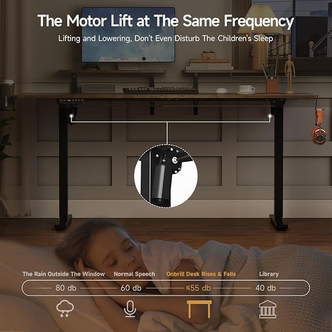 - Excellent Stability: Our sit-stand ensures exceptional stability, even when lifting. It is crafted with a sturdy frame structure and wide T-shaped feet. The powerful stand-up desk features motor adjustment that allows for smooth up-and-down movement. The lifting speed is about 55 decibels.