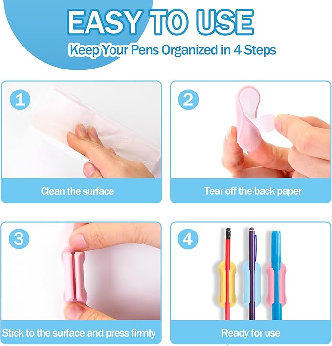 - Safe Materials: adhesive pen holder is made of silicone material, does not contain BPA, is safe and durable, and will not crack or fall off over time; It ensures long-term and safe use, and provides a safe and reliable way to organize and place pens