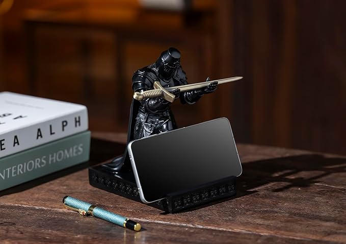 Medieval Templar Vanguard Officer Knight Pen Holder Pen Stand Desk Organizers and Accessories Resin Mobile Phone Stand as Gift for Office and Home Desk Organizer (Black)