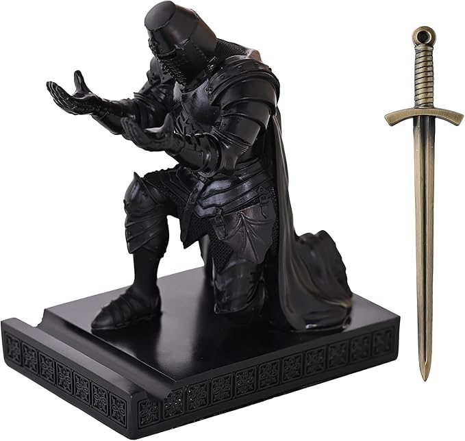 - [Chivalry Gift] This templar vanguard pen holder with fantastic shape, He possesses qualities such as courage, perseverance, loyalty, moderation, respect for others, tolerance, justice, kindness, etc. Perfect as Company prize, Birthday, Father's Day, Christmas Gifts. Perfect fit for offices, study and living room etc.