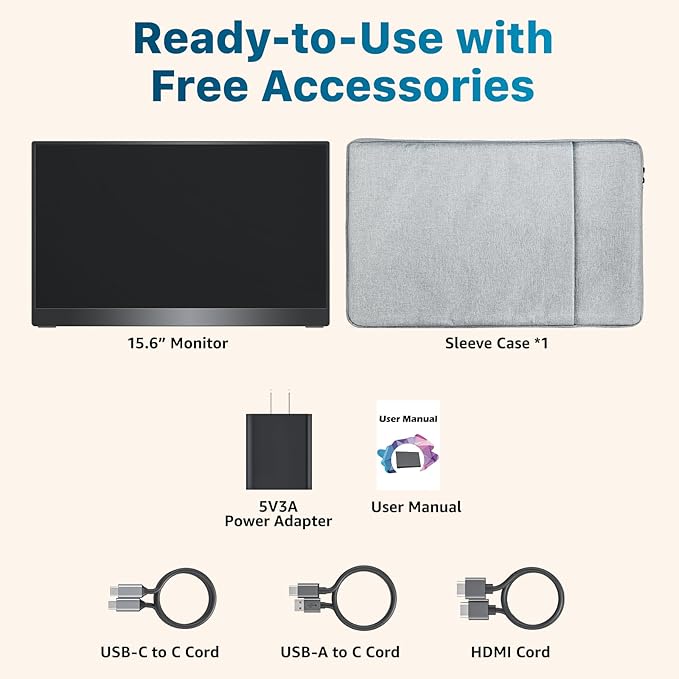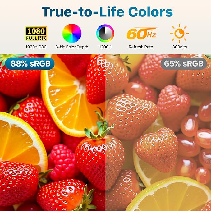 - Natural & Clear Display – This 15.6-inch portable monitor offers 1080P resolution with 88% sRGB and a 60Hz refresh rate. HDR support enhances clarity and contrast for everyday tasks, casual gaming, and media viewing.