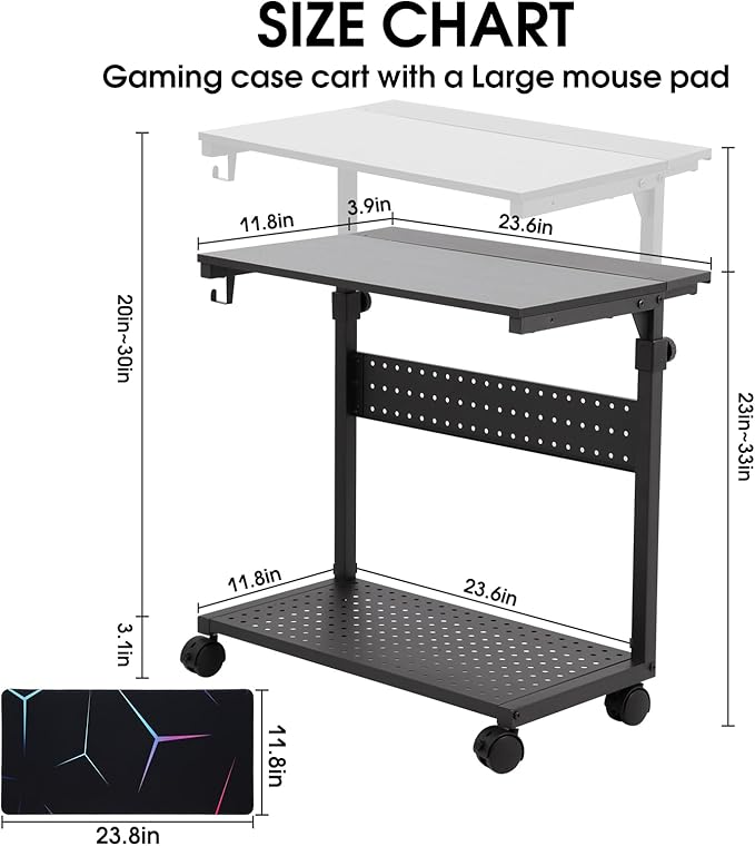 - FASHION DESIGN: Tabletop with high-tech mouse pad combines a stylish, heavy-duty iron frame, perfectly blending with your cool gaming settings and most home office decor styles. It can be used as a computer tower stand under the desk, a PC stand for carpets, a printer stand, and a mobile side desk or sofa table in a home office.