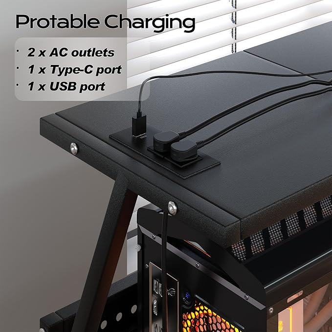 - Built-In Charging Station for All Devices:Never run out of power again! This Computer Tower Stand with Charging Station includes 2 AC outlets, 1 Type-C port, and 1 USB port—perfect for charging your phone, tablet, or wireless earbuds, while also powering your printer, desk lamp, or small office gadgets. No more messy extension cords; all your devices get power in one convenient spot, making your workspace neat and efficient.