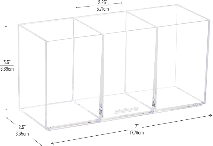 Mind Reader Pen and Accessories Holder, Desktop Organizer, Makeup Organizer, Office, Acrylic, 7"L x 2.5"W x 3.5"H, Set of 3, Clear