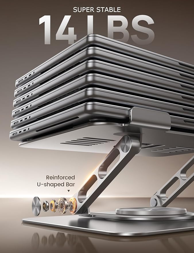 - 360° Rotation:The laptop riser base supports 360° rotation, allowing you to share your screen, making it perfect for conference presentations, team collaborations, client demonstrations, and more. There's no need to move the entire laptop; simply rotate the screen to achieve more efficient communication.
