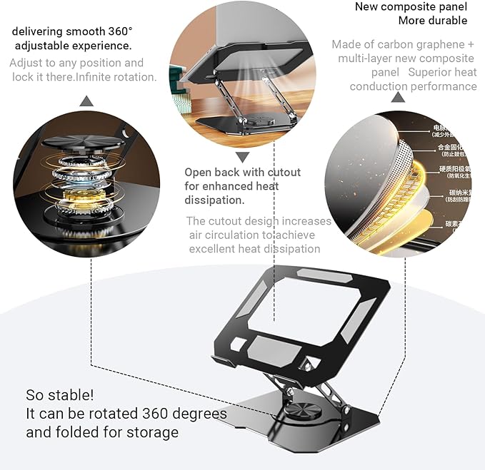 - 2. 【Universal Compatibility & Sturdy Support for Multiple Devices】 This versatile stand securely holds laptops from 10” to 17”, tablets like iPads, and even monitors (up to XX lbs). Its widened anti-slip silicone base and top pad ensure your valuable devices stay firmly in place, even when swiveling or typing.