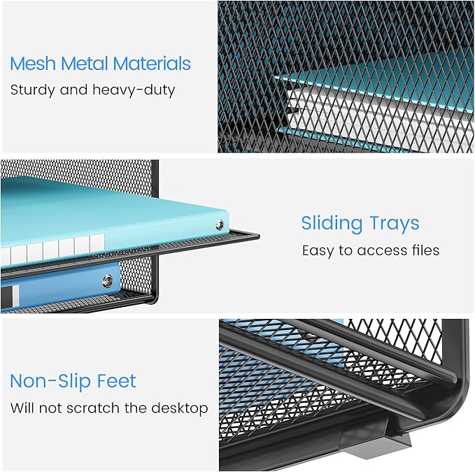 Lavatino Desk Organizer - Metal Mesh with 2 Paper Letter Trays, 7 Flexible Dividers, 2 Vertical File Holders for Office/Home/Classroom Supplies, Desk Organizers and Accessories, Black