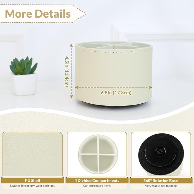 SKYDUE Rotating Pencil Pen Holder, PU Pen Organizer with 4 Slots - Desk Organizer and Accessories for School, Home, Office Supplies