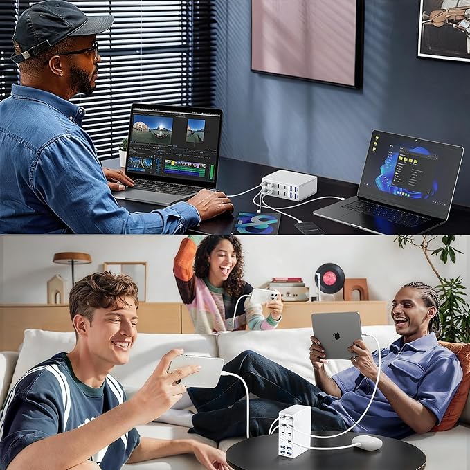 - 【Universal Compatibility】:The usb charging block is made of a unique leather texture material for added durability. Multi usb charging station supports PD3.0/PPS, QC, PE2.0, AFC, FCP, SCP fast charging protocols. 8 USB-C and 4 USB-A ports are compatible with MacBook Pro/Air, Dell XPS, iPad Pro/Air/Mini, iPhone 17 /17 Pro Max 16/15/14 /13 /12 Pro Max /Plus/X/Mini, AirPods Pro,iWatch, Samsung Galaxy S25 /S24/S23/ S22 /S21 Ultra, Switch, Steam Deck, Surface Pro, Google Pixel and more.
