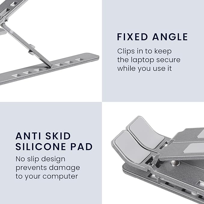 - Ergonomic Design: This travel laptop stand is adjustable in height and tilt, ideal for reducing strain on your neck, shoulders and back during long work, study or gaming sessions.