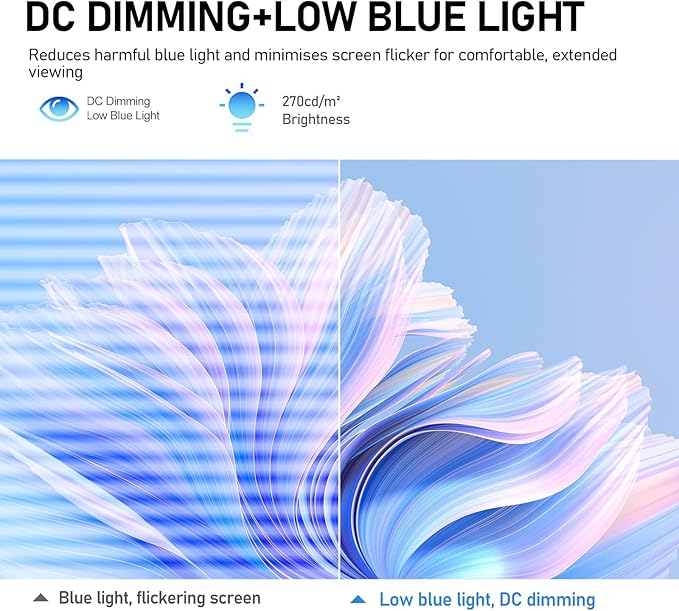 - 【Multiple Eye-Care Technologies for Smooth and Comfortable Viewing】Adopting DC dimming technology, it fundamentally reduces screen flicker. Paired with low blue light design, it effectively alleviates eye strain during long-hour use. It also supports Adaptive Sync technology, which synchronizes the screen refresh rate with the graphics card to eliminate screen tearing and stuttering. The 60Hz refresh rate also guarantees smooth performance for daily office work and video playback.