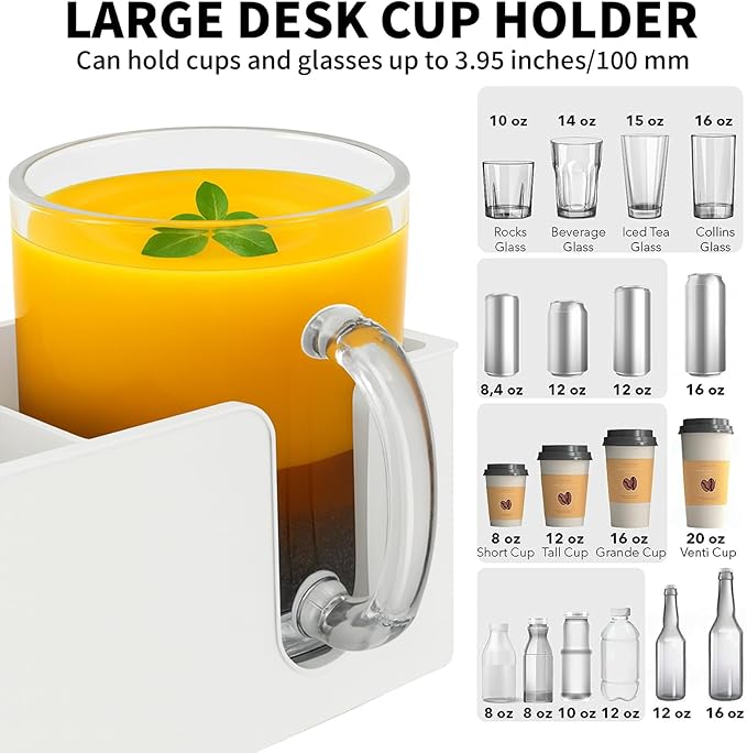 - 【Large and Deeper Capacity】 The Desk cup holder has a diameter and height of 3.7 inches. It can work perfectly with most popular brands bottles of 18-30 oz.