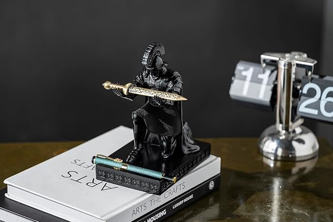 - This warrior knight pen holder with roman era imperial guard design shape, looks great on desk ornament for men. Perfect as Company prize, Birthday, Father's Day, Christmas Gifts. Perfect fit for offices, study and living room etc.