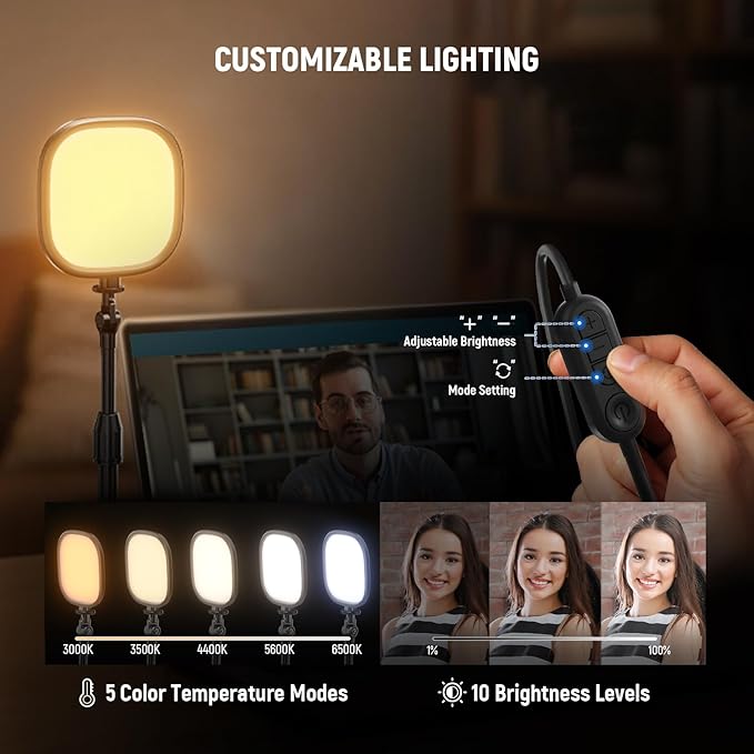 - 【Adjustable Height & Angle】 The stand adjusts from 7.9"-11" (20-28 cm) and features a 1/4" screw mount that allows 180° tilt, enabling flexible light positioning. Key or fill light provides full screen lighting compared to circle ring light, for TikTok/YouTube video recording, laptop/computer monitor Zoom meetings, streaming, podcast, vlogging, makeup artists, and more