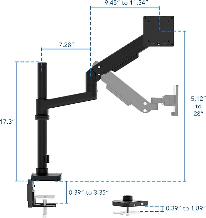 - Perfect for mixed-use desks – The added vertical range makes this mount ideal for taller users, sit–stand setups, and workspaces where multiple people use the same desk—without requiring a full readjustment each time.