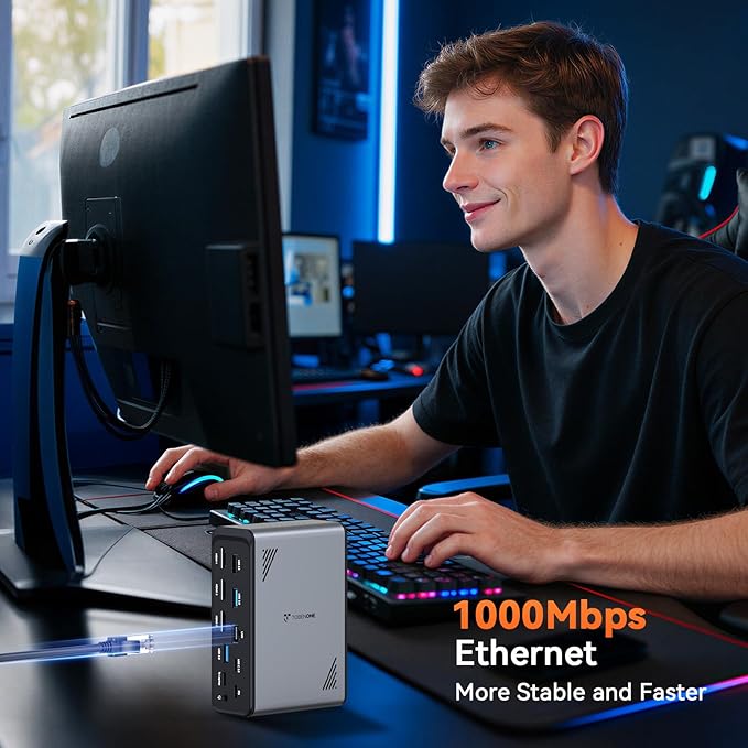 - 18-in-1 Expansion: TobenONE usb c docking station packs 18 ports (9 USB/PD/HOST/3HDMI/RJ45/SD/microSD/3.55mm audio included) to turn your laptop into a powerhouse—dual/triple 4K@60Hz displays make multitasking a breeze for working from home or design - related tasks. 18 ports eliminate cable clutter, keeping your desk neat and orderly while maximizing your device's potential.