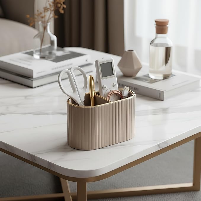 - Gold Line Decor & Modern Oval Shape: Featuring refined gold edging and a sleek oval silhouette, this pen cup holder elevates your desk aesthetic with a premium, fashion-forward look. Ideal for desks, nightstands, vanities, and coffee tables.