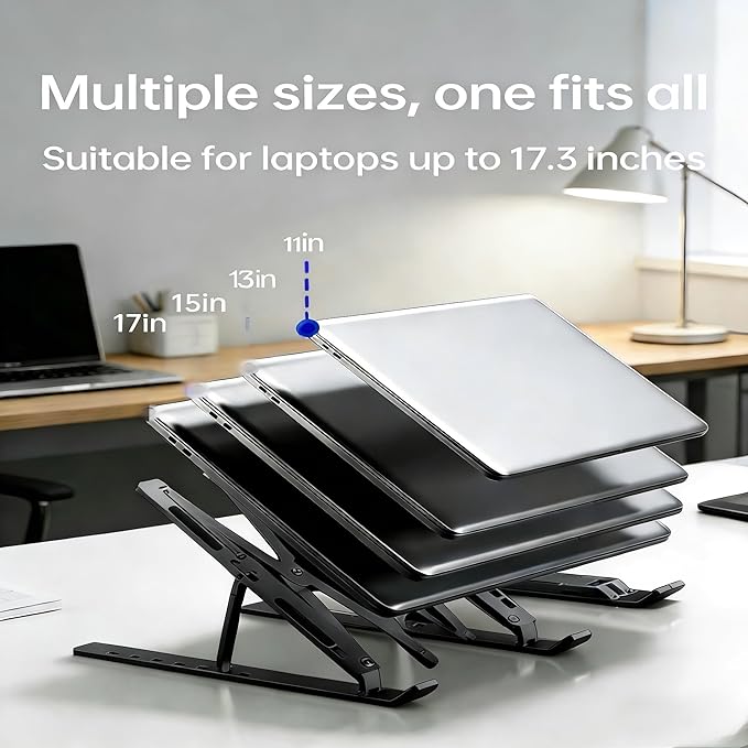 - Sturdy & Stable Support: Designed with a triangle support system, this laptop stand ensures maximum stability for your laptop. The large anti-slip silicone pad secures your device in place, preventing scratches and sliding, making it a reliable portable computer stand for all your needs.