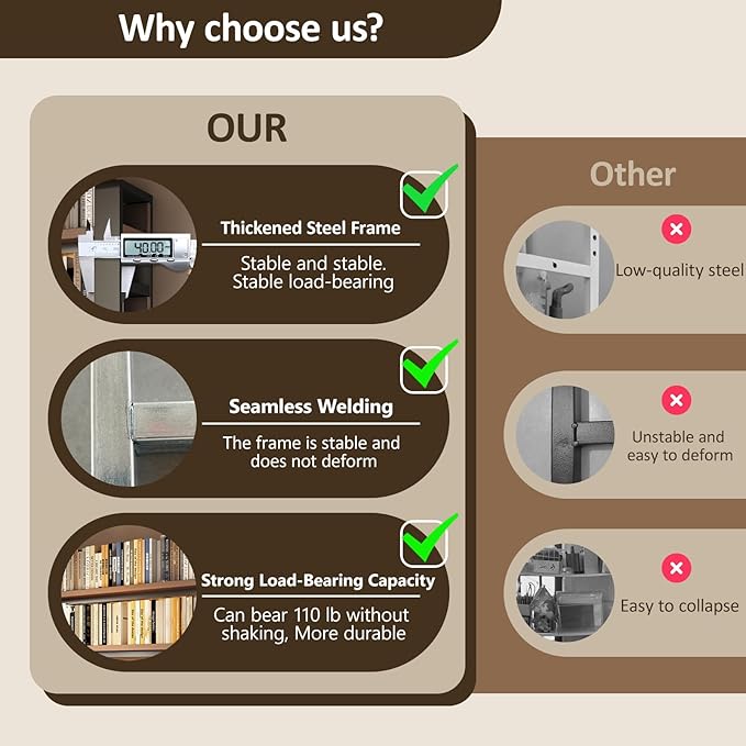 - Heavy-Duty Construction: We've built this desk storage shelf to withstand daily use. The frame is crafted from reinforced, thickened steel for rock-solid stability, and the shelves are made of high-quality solid wood board that won't sag. This desk shelves for top of desk is stable and can bear 44 lbs per layer. From decorative items to stacks of books, ensuring long-lasting durability.