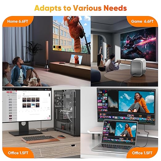 - 8K UHD Performance: Dual-Direction DisplayPort to DisplayPort Cable, 1.5 feet (approx. 0.46 meters) in length. Supports resolutions up to 8K@60Hz and is compatible with resolutions below 8K. Supports resolutions up to 8K (7680x4320 @ 60Hz), 5K (5120x2880 @ 60Hz), 4K Ultra HD (3840x2160 @ 240Hz), and 1080p Full HD. Designed for gaming enthusiasts seeking a higher-resolution display experience