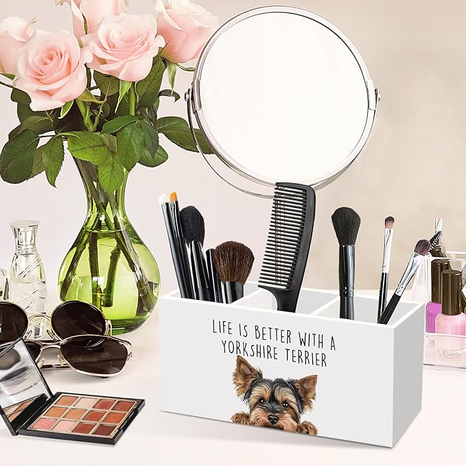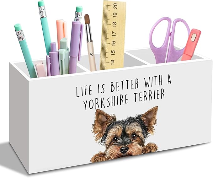 Yorkshire Terrier Gifts Dog Pen Pencil Holder for Desk, Funny Yorkie Dog Gift Office Desk Accessories, Life Is Better with a Yorkshire Terrier Pen Holders Organizer for Women Bathroom Decor